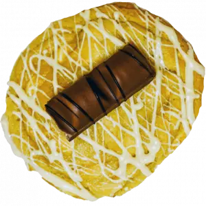 Our classic cookie dough filled with Belgian white chocolate chunks stuffed with a Kinder spread centre. This cookie is topped with a white chocolate drizzle and piece of Kinder Bueno chocolate bar.